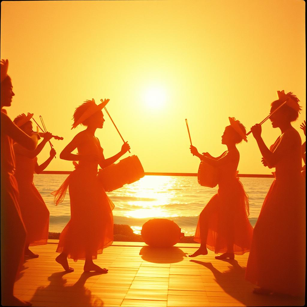 Traditional Garifuna music with primero and segunda drums, maracas, and call-and-response vocals, Deep Afro-Caribbean rhythm, earthy and spiritual atmosphere, Vocals in Garifuna, expressive and rhythmic, Include paranda-style guitar strumming and coastal ambience