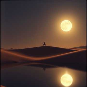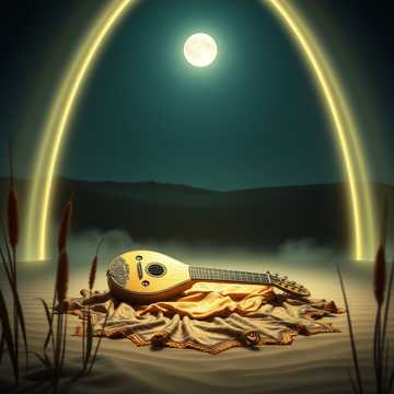 Arabic classical music in Maqam Bayati with mystical, ethereal female vocals, Use oud, qanun, ney flute, riqq and soft darbuka with iqa' Maqsum rhythm, Melody should be flowing, ornamented, and bright in the upper register, Female vocal style: expressive, airy, mystical, with Arabic melisma, Reverb-rich, desert-night atmosphere, shimmering highs, soft low percussion