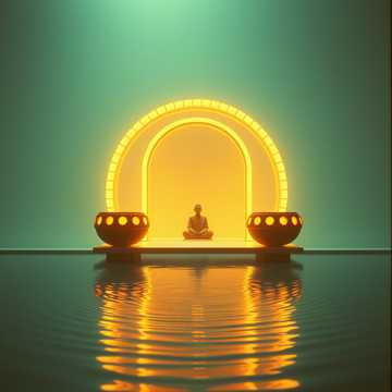 Indonesian Gamelan, traditional metallophones, deep gongs, rhythmic kendang drums, shimmering bell tones, pentatonic Javanese scale, hypnotic repeating patterns, ceremonial atmosphere, warm ambient textures, cinematic world music, spiritual and peaceful mood