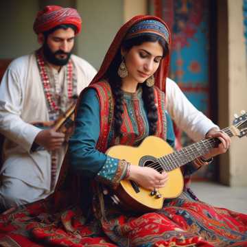 A hypnotic fusion track weaving Super Bass reflex beats with FA9L-infused synth textures, anchored by traditional Balochi percussion patterns, The melody unfolds in Raag-inspired motifs, featuring expressive bowed strings and woodwinds, Percussion crescendos drive each section, blending deep electronic lows with vibrant regional rhythms