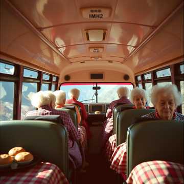 [yodel] Cheerful yodeling song about grandmas on a fun bus trip to the mountains, Use playful yodel phrases (‘Yo-da-le-ri-le-hi-hi!’), baking pies, and enjoying the mountain adventure!