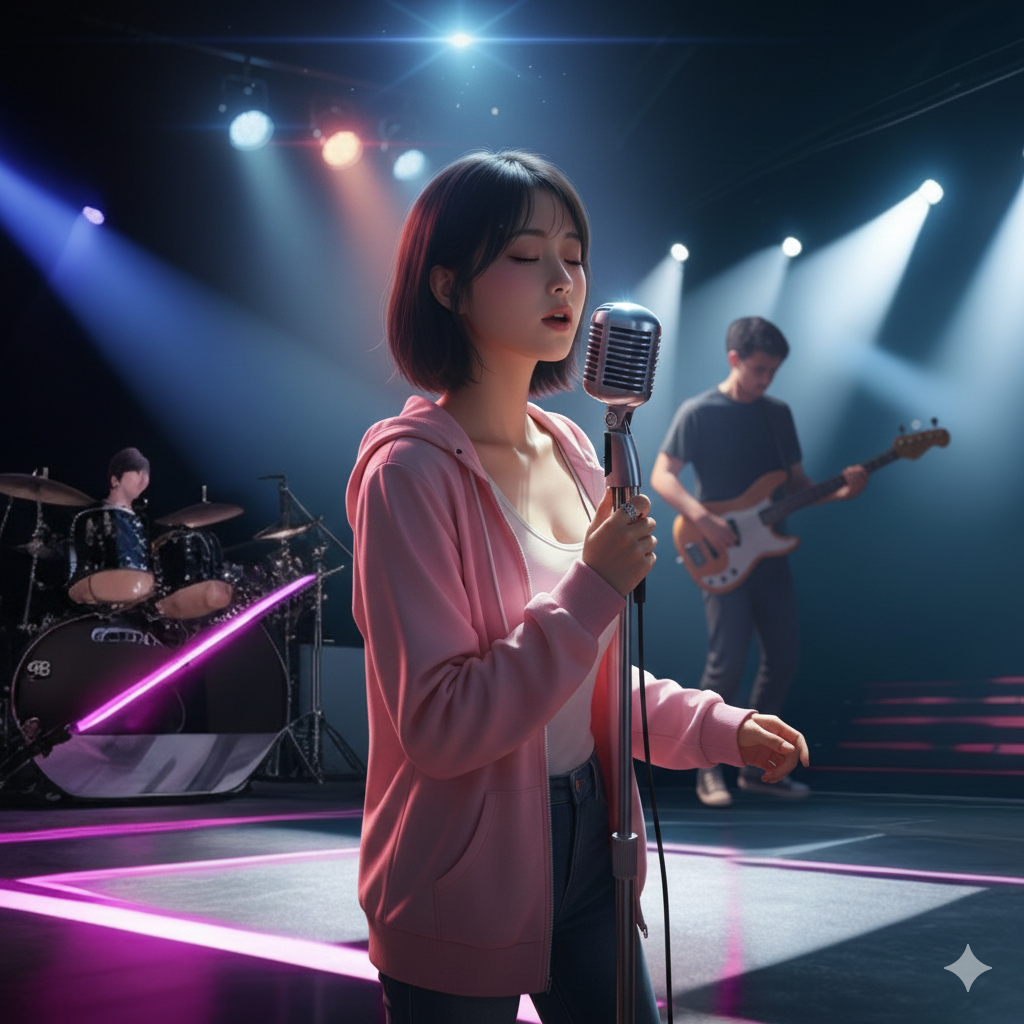 [Spoken: Male voice, talk tone, no singing][Overall Style: Dreaming Pop-Jazz, 74 BPM, shimmering electric piano, melodic walking bass, brushed swing drums, soft woodwinds, 20yo female vocal with warm whispered tone, pastel bloom mix] [Verse 1: Gentle recorus, like spring’s first breeze through plum blossoms] [Chorus: Dreamy soundscape, “Little Ally” wrapped in a pearl-pink veil of petals] [Verse 2: Botanical oils and warm hands beneath cherry trees] [Verse 3: Mirror moment, sakura lip balm, heart fluttering with new hope] [Bridge: Skin-to-skin warmth, sunlight on shoulders, soft sigh] [Outro: Moonlight fades with sweet dew, like a lingering spring dream] [Opening Scene: The lights dim gently, A soft murmur ripples through the crowd, followed by a burst of applause, The chorus hums, laughter and cheers echo like petals in the breeze, A brushed snare begins to tap—a heartbeat of anticipation, ]