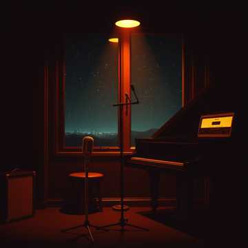 Live performance at a smoky small jazz club, jazz, vibes jazz, piano jazz, acoustic sounds, whispers, soft male voice, intimate atmosphere, close mic recording, live house reverb, faint background sounds of a quiet audience and clinking glasses, relaxing music, feelings, loneliness, static, 44, 1kHz