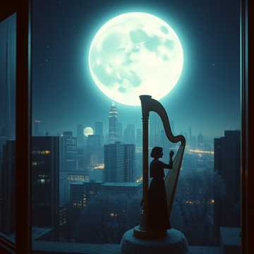 Grand Italian opera ballad with full orchestra and featured harp; Italian female vocals, soaring and expressive, Starts intimate with solo harp and soft strings, then swells into a powerful, dramatic climax with brass and timpani, ending on a tender, suspended final note with lingering high vocal ad-lib, harp, opera, dramatic, vocal