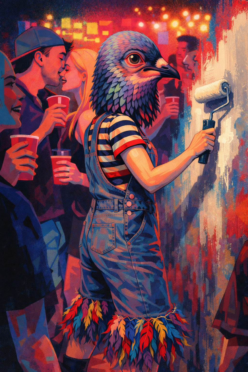 Layers: shimmer stacks, falsetto scream overdub, laugh overlays, gravel grit