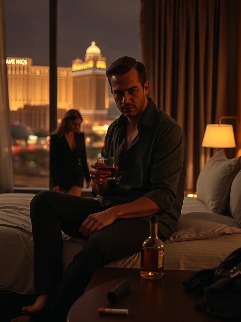 Post-grunge / hard rock with alternative metal and melodic pop-rock influence, Mid-tempo with a dark, seductive groove, Male lead vocal, gritty but emotional, controlled rasp in choruses, intimate in verses, Verses are sparse and tense with muted distorted guitars and pulsing bass, Pre-chorus builds tension with rising chords and drum lift, Chorus explodes into wide open melodic power with thick layered guitars and vocal harmonies, Use modern but organic production, no pop synths, Guitars are heavy but clear, slightly dirty, Bass is warm and driving, Drums are punchy with strong kick and roomy snare, Bridge drops into half-time breakdown, then rebuilds into final chorus with maximum emotional impact, Guitar solo is expressive and melodic, not shreddy, Sound is dark, sexy, and emotional, Avoid clichés, avoid glam metal, Focus on tension, release, regret, desire, and memory, Mood: reckless attraction, emotional aftermath, late-night confession