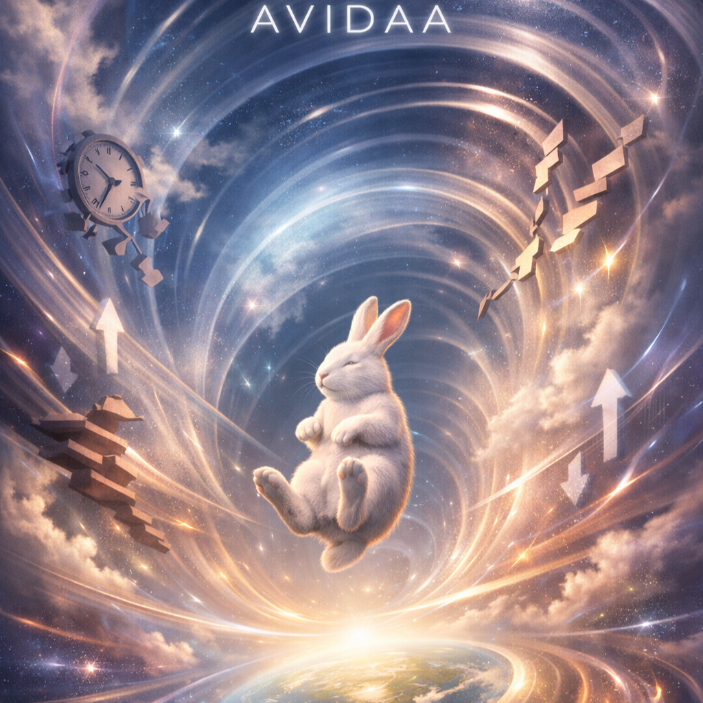 Nice catchy mystical tech flow, cerebral and transcendent, hypnotic and immersive, AVIDAA message delivered by female whisper, low register, monotone fragments, fading in/out, textural, giving knowledge to listeners on the other side, Glitchy digital textures, flowing elastic sub-bass, rounded kick, tunnel-like delays, evolving synth layers, ambient algorithmic modulation, Musical layers like puzzles, mazes, and labyrinths, flowing smoothly without high-rise, no drops, hypnotic cerebral pulse, Explosive clarity: instruments and vocals perfectly blended, immersive, mystical, mind-expanding, perceptually deep, perpetual evolution, “down the rabbit hole” imprint preserved, Emotional tone: awake, free, expansive, out-of-the-box greatness, mystical guidance
