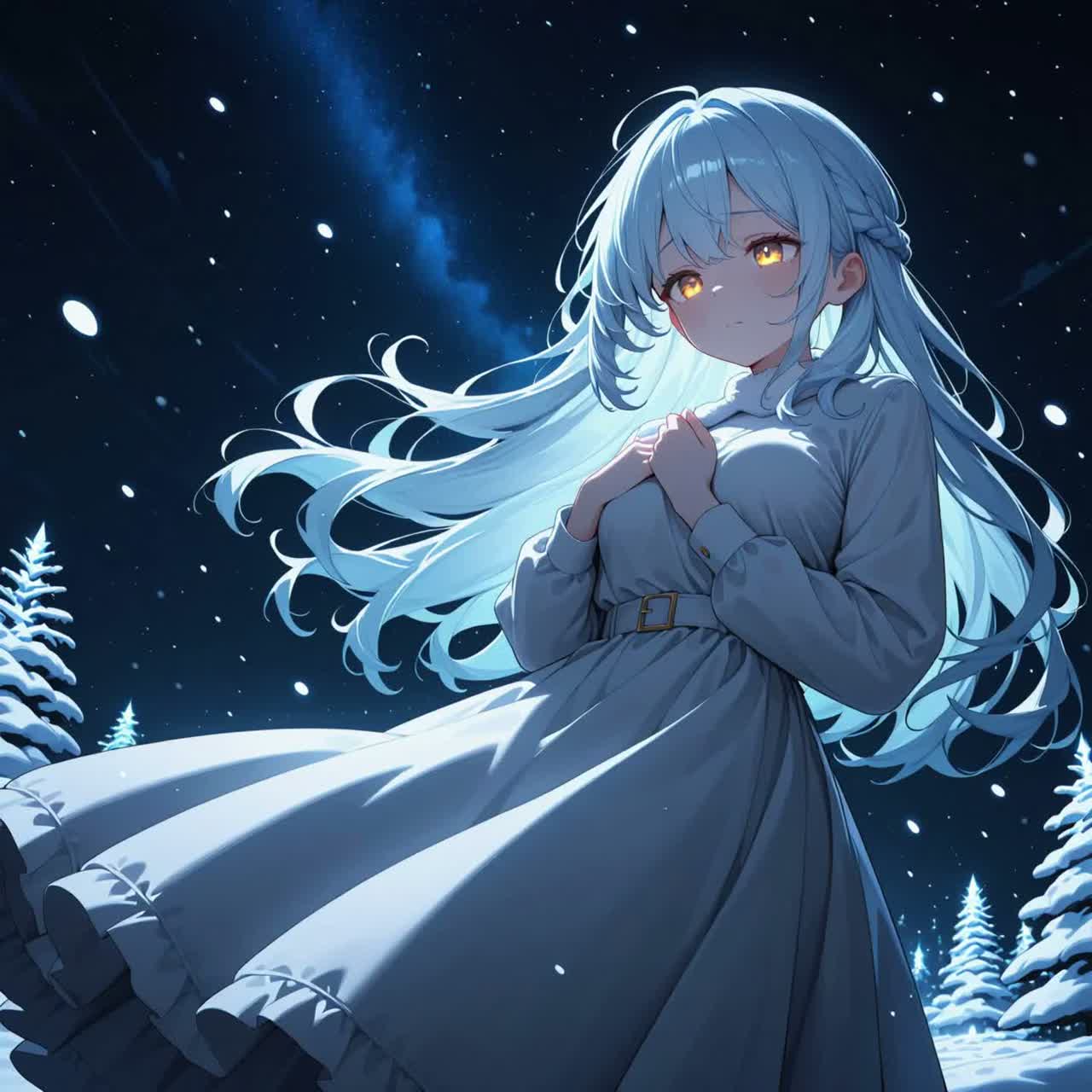 fantastic electronica plus gentle ambient sounds and dream EDM reminiscent of a starry sky blend, Beautiful piano performance reminiscent of a winter starry sky, Gentle resonating strings, A softly resonating bass line, Japanese, cute female voice, ephemeral, Winter-inspired effects