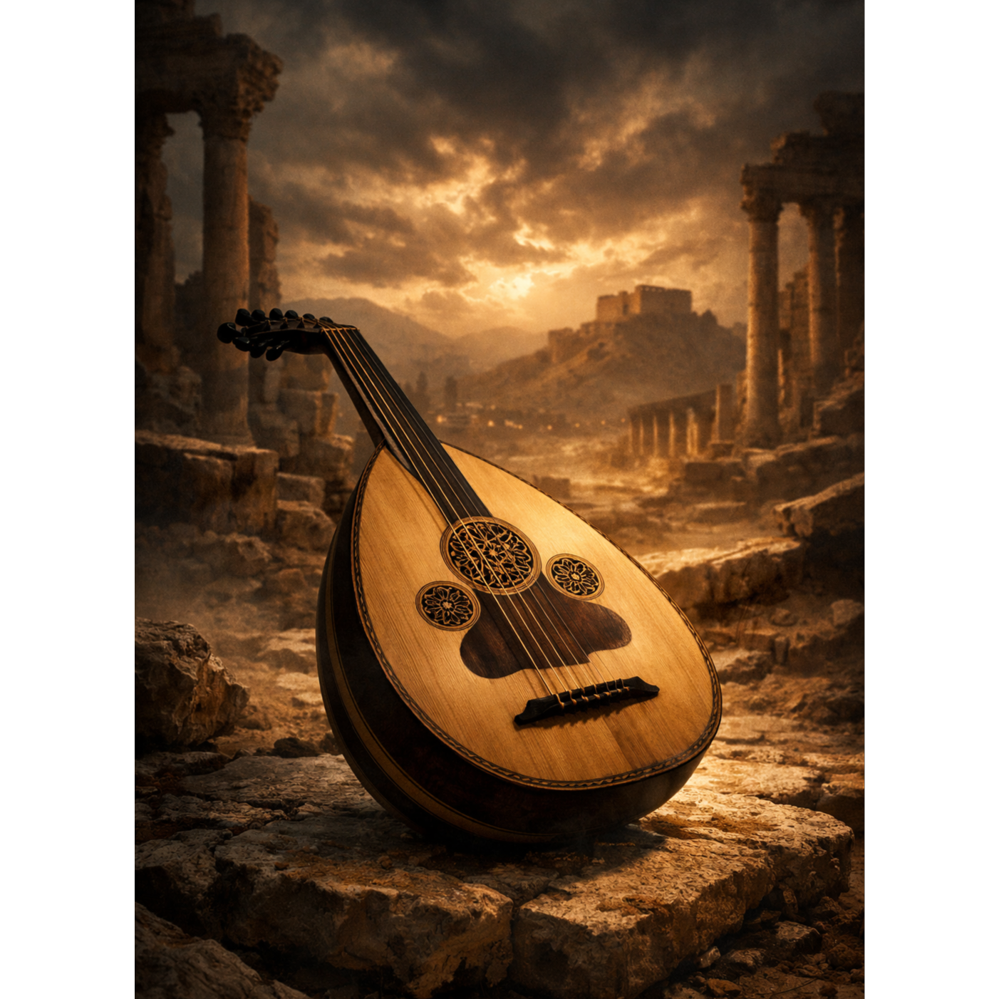 A solo oud piece unfolds at 65 BPM in a minor key, built on expressive tremolo picking and mournful melodic bends, The performance is set within a dry, up-close recording space to enhance intimacy, Emphasis is placed on dynamic phrasing, weaving cinematic sadness with nuanced storytelling