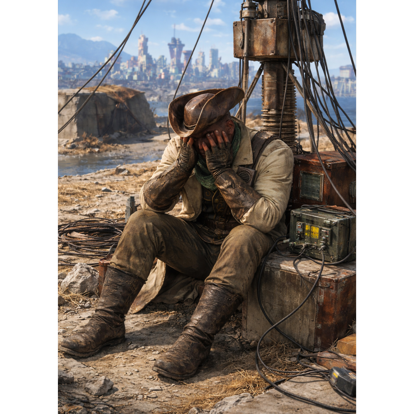 A nu-metal and prairie rock blend kicks off with crunchy electric riffs underlaid by acoustic strumming, joined by slide steel weaving twangy accents, Brushed drums lock into a boots-on-dust groove alongside a swinging, round bass, Male vocals—warm and rough—deliver lines with dry, storyteller humor at a relaxed pace, The chorus rises into sing-along territory, The arrangement is layered with crackling campfire ambience, mixing grit with a touch of rustic resilience throughout