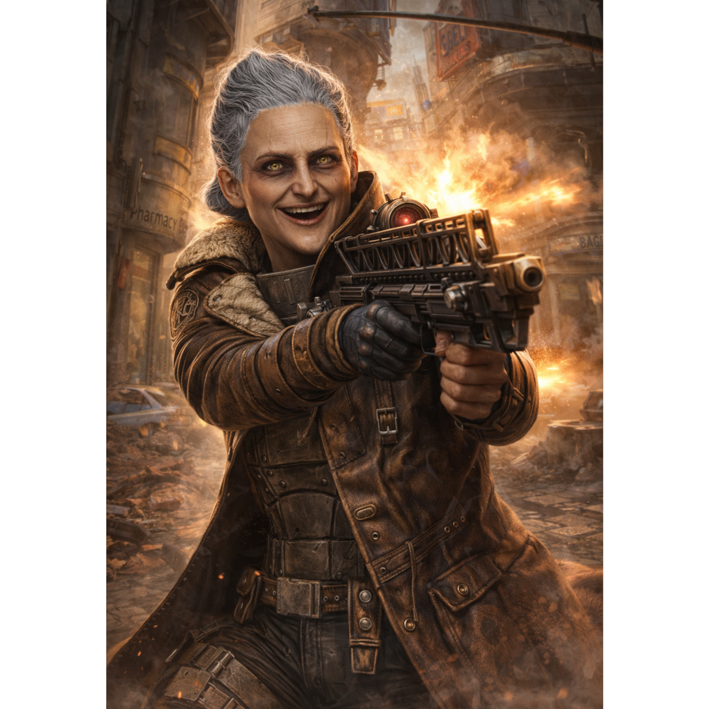 Theme: Super mutant discovering strength and chaos through Death-Granny