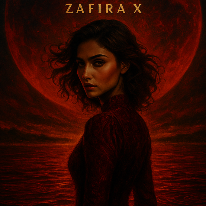 Dark slow Atlanta trap beat, Heavy 808s, crisp hi-hats, deep kicks, cinematic trap drums, Atmosphere: dark, mysterious, powerful, luxury, Red Dynasty vibe, Viral pop/trap production quality, 3 minutes, Female vocal style (Zafira X), mix of soulful singing and rap, strong vocal harmonies in the hook