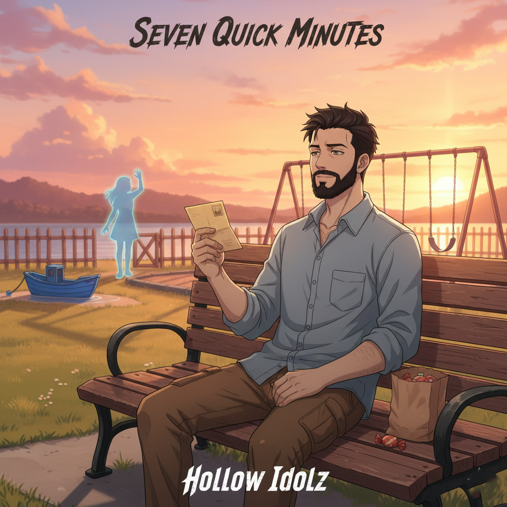 A melancholic indie rock song in a minor key, featuring a male vocalist with a clear, slightly melancholic tone, The instrumentation includes a clean electric guitar playing arpeggiated chords, a bass guitar providing a steady root, and drums with a simple, driving beat, The song has a moderate tempo, Production elements include a reverb on the vocals and a subtle delay on the guitar, creating a spacious atmosphere, The song structure follows a verse-chorus pattern with an instrumental bridge, The melody is primarily diatonic, with a focus on sustained notes in the vocal line
