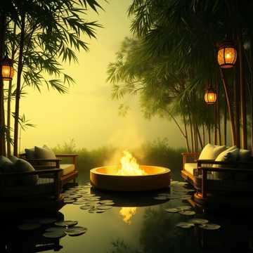 Emotional Imagery Cues: lantern light, bamboo shadows, lotus petals drifting, fireflies, steam rising from tea, quiet laughter, late-night warmth