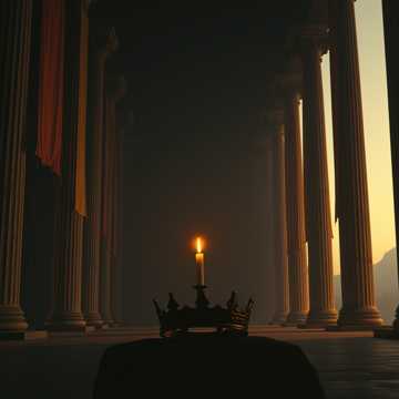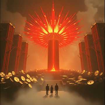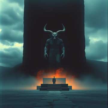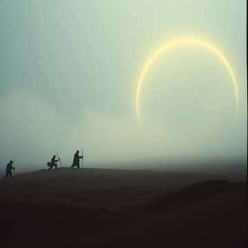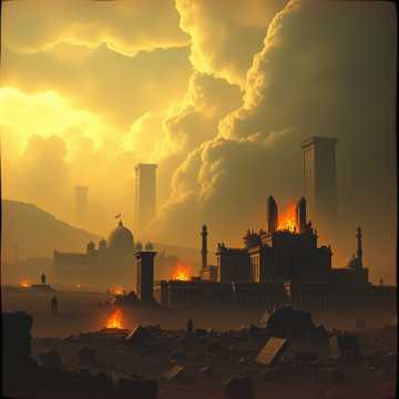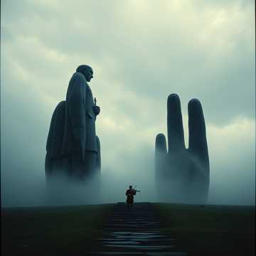 Epic Cinematic Orchestral, Prophetic, Mystical, Grand, Majestic, Ominous Undertones, Spiritual, Ethereal Choirs, Resonant Percussion, Deep Low End, Building Tension, Moderate Tempo, 95 BPM, Wide Stereo Field, High Fidelity, Monumental Orchestral Drama, Two Steps from Hell inspired
