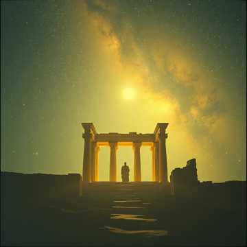 Epic Cinematic Orchestral, Mystical, Ethereal, Sacred, Ancient Wisdom, Grand, Awe-Inspiring, Majestic Choirs, Resonant, Slow to Moderate Tempo, 90 BPM, Wide Stereo Field, High Fidelity, Two Steps from Hell inspired wonder
