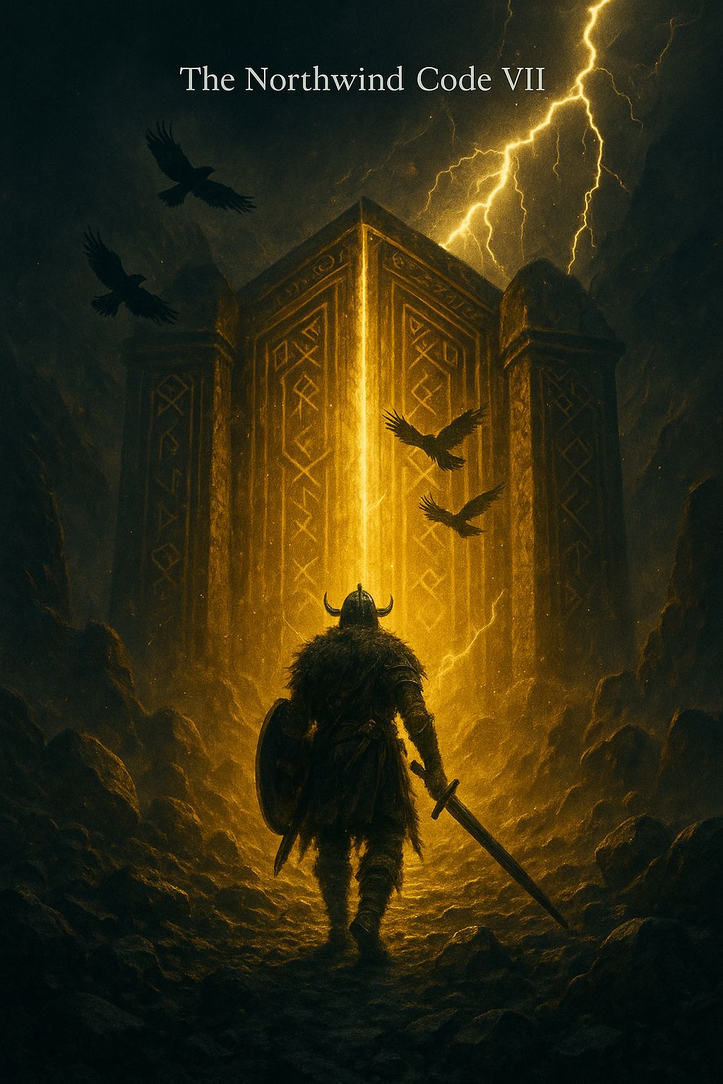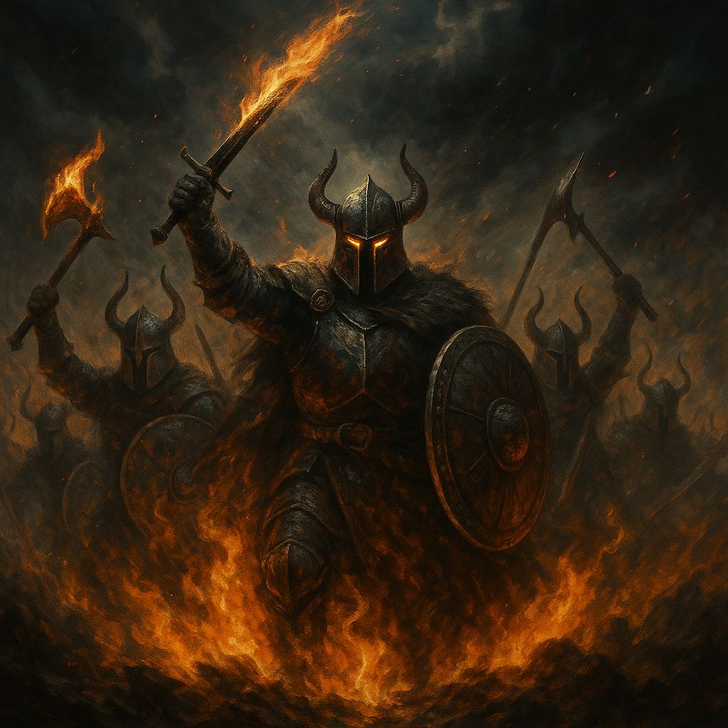 A fast, mythic Norse fusion anthem where a fallen warrior becomes the immortal “shield between worlds, ” 118 BPM, D minor, Sound blends Norse folk drones, doom-metal atmosphere, cinematic brass, post-metal surges, and EDM sub-bass hits, Intro: low drones, quick trance pulse, icy wind, Verses move fast with folk strings, deep throat drones, and tight rhythmic delivery, Pre-chorus rises sharply with layered choir and bass rumble, Chorus explodes with massive brass, stacked choirs, thunder drums, and EDM-impact drops, Second verse tighter with raven-call accents and atmospheric synths, Bridge short and hammer-like with ritual chants and industrial metallic hits, Final chorus huge, bright, divine, with storm swells, horns, and pulsing EDM low end, Outro quick: wind hiss and fading thunder, Mood: powerful, divine, relentless, ascendant, #nordic #cinematic #folkmetal #edm #postmetal #valhalla #northwind #fusion #epic