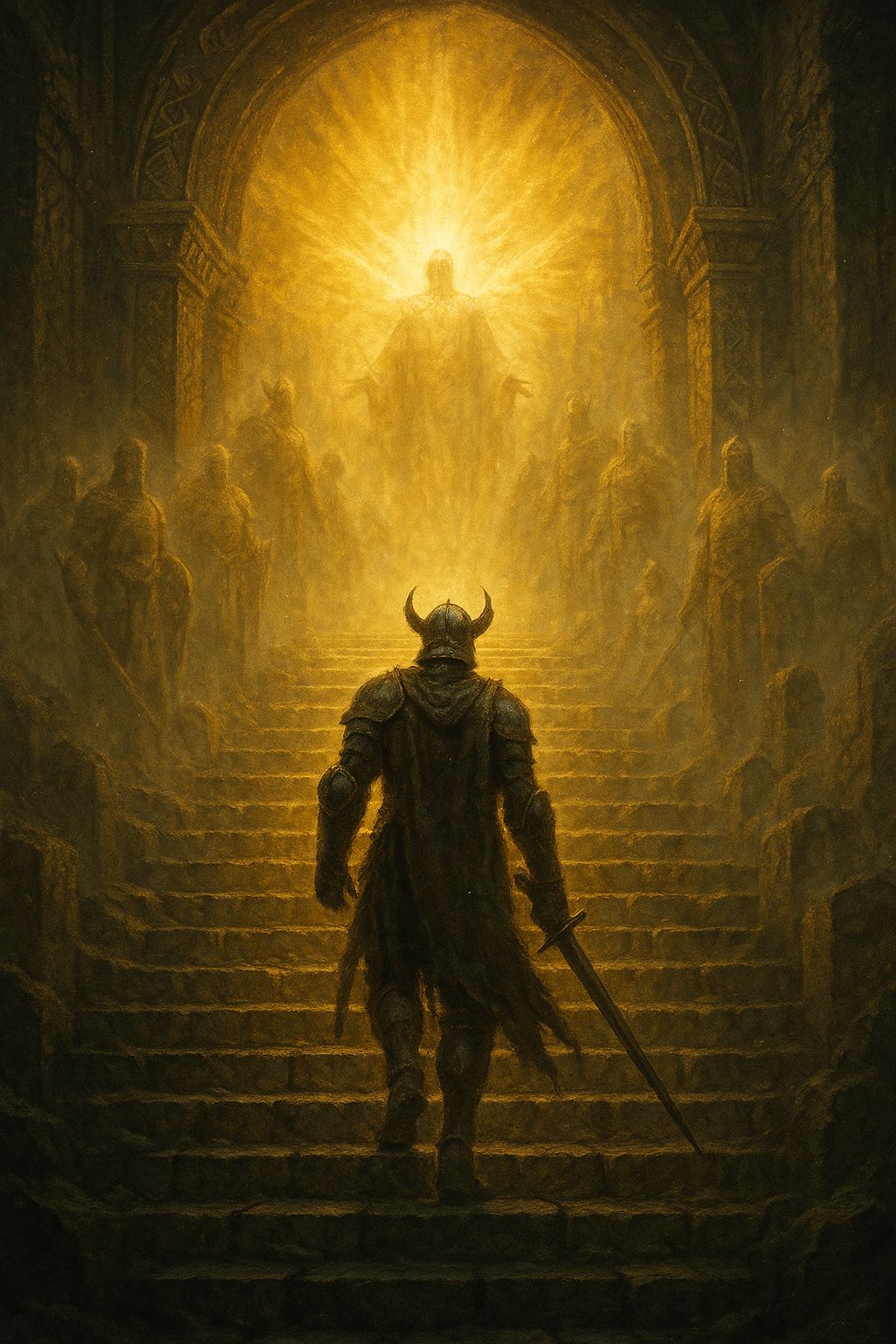 Cinematic Norse-inspired folk-metal anthem of divine awakening and ascension, 100 BPM, D minor, Opens with low wind, thunder, and deep breath-like percussion, First verse minimal: distant cello, nyckelharpa drones, female lead vocal soft and reverent, Sub-bass heartbeat under each line, Second verse adds male throat chants like ancient priests, At 1:00, drums and horns swell, mimicking a storm’s inhale, Midsection introduces layered choirs and rising brass as realization strikes — Valhalla’s gates open, Bridge surges with thunder, war drums, and chanting “Breath of the Allfather, ” Final chorus immense: full choir, heavy drums, cinematic brass, and ethereal vocals merging like storm and sky, Ends with calm wind and a single human exhale, Mood: divine, transcendent, awakening, eternal, #nordic #folkmetal #norse #valhalla #cinematic #chant #northwind #epic #mythology #ascension #choir #orchestral