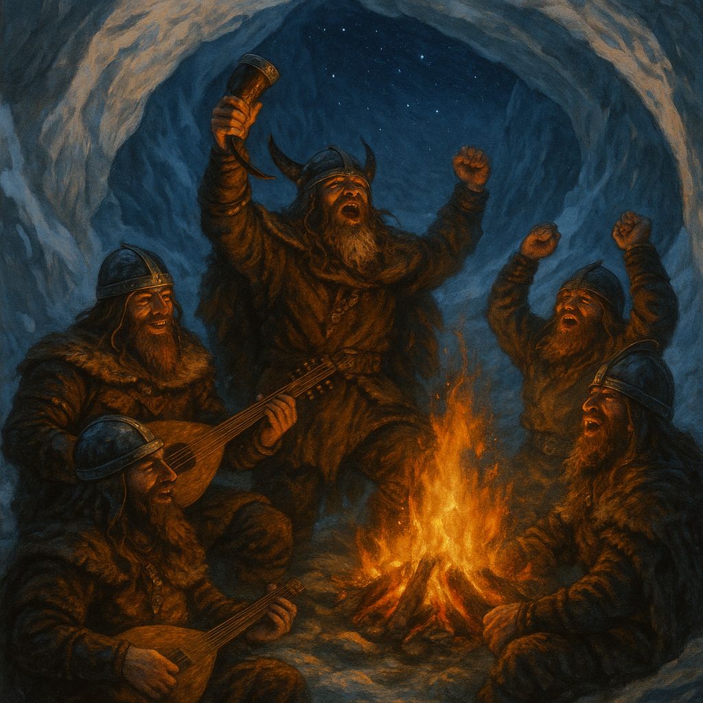 Epic Viking metal war anthem with deep male lead vocals, guttural group chants, heavy war drums, distorted guitars, and Nordic folk instruments, 132 BPM, D minor, Opens with distant war horns, wind, and stomping drums echoing through icy fjords, Verse I led by raspy baritone voice with throat drones beneath, Each line answered by rhythmic group chants like warriors rowing in unison, Bridge swells with tagelharpa drones, battle horns, and rising percussion, Chorus explodes with gang chants shouting “Blood and Stone!” in layered harmony, Second verse adds double kicks, distorted riffs, and drumline momentum, Final chorus expands with cinematic brass, choir drones, and thunderous drums fading into wind and crackling fire, Vocals primal and percussive, blending call-and-response chants with melodic growls, Mood: fierce, ancient, triumphant, Nordic, #vikingmetal #folkmetal #chant #battle #nordicfolk #epic #cinematic #nordic #war #northwind