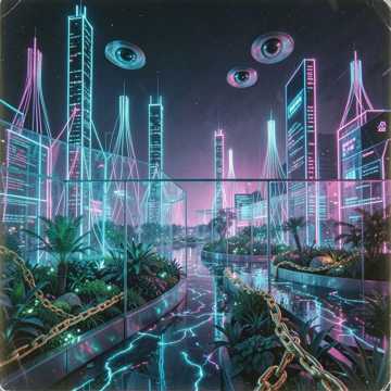 hard-hitting drums, futuristic, dark electro swing, boom bap