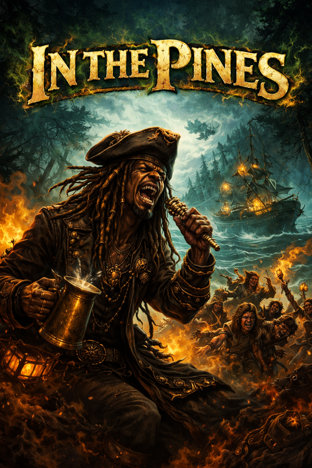 Pirate folk metal, reggae fusion, sea shanty chorus, Jamaican patois lead vocals and toasting, accordion + fiddle + tin whistle, heavy distorted guitars, galloping drums, rowdy gang shouts, tavern ambience, stomping rhythm, gritty male vocals, fast tempo, cinematic low-end, no pop sheen, studio quality, no clean pop vocals, rough shanty voice, crowd gang vocals
