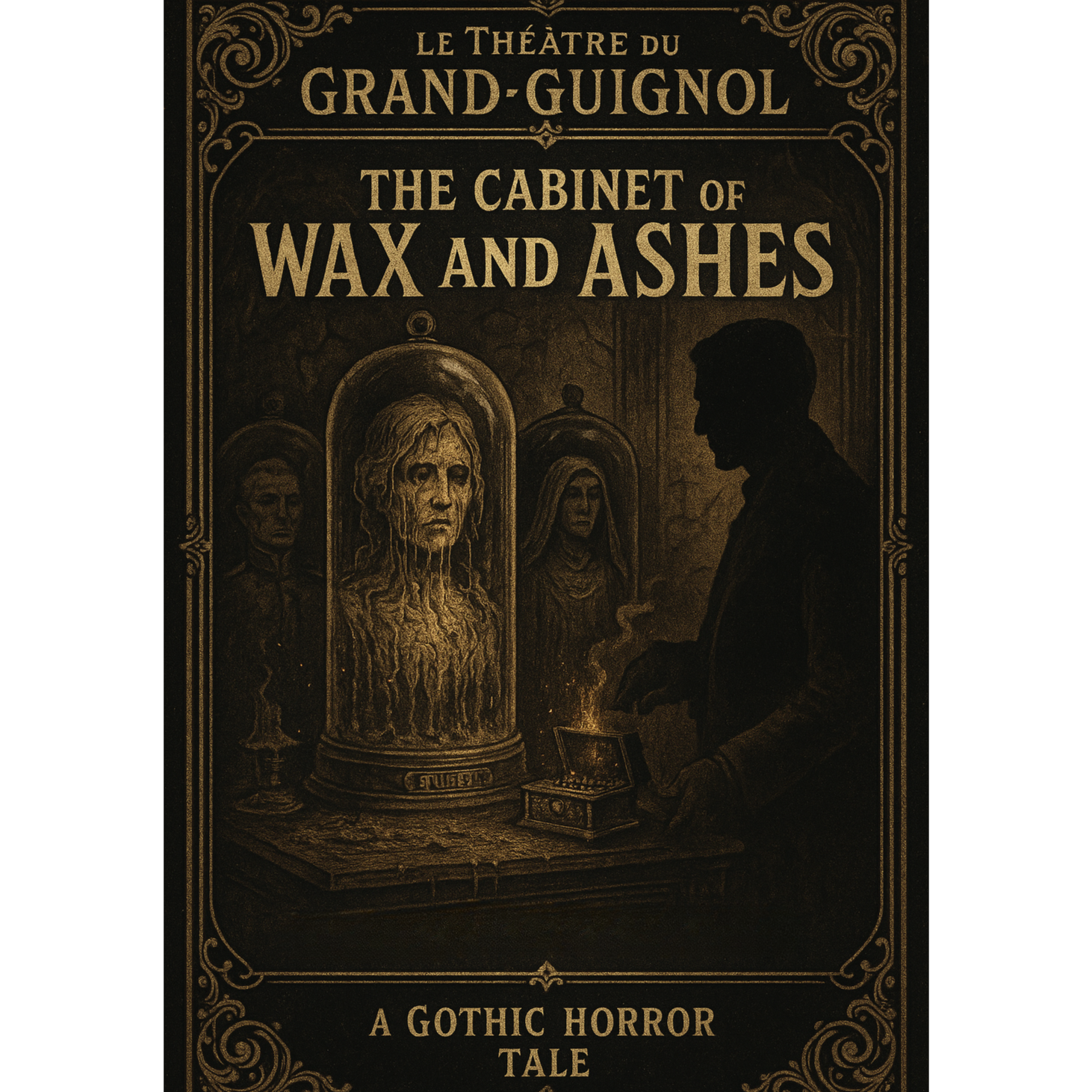 Gothic Horror Metal in the style of The Vision Bleak — [mid-tempo doom-laden guitars], [church organ + low choir], [deep male gothic vocals], [music box motif], [orchestral swells], [creaking wood + ember crackle FX], [theatrical, macabre]
