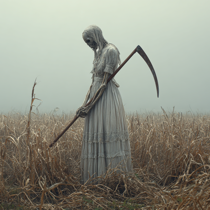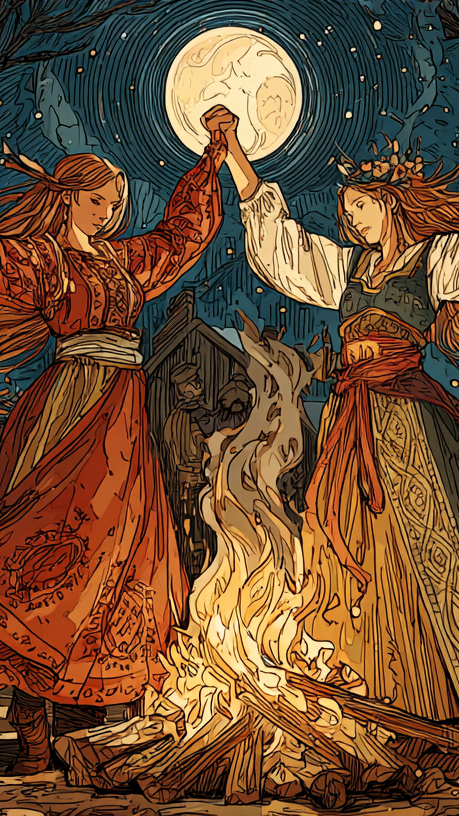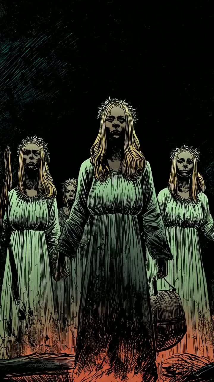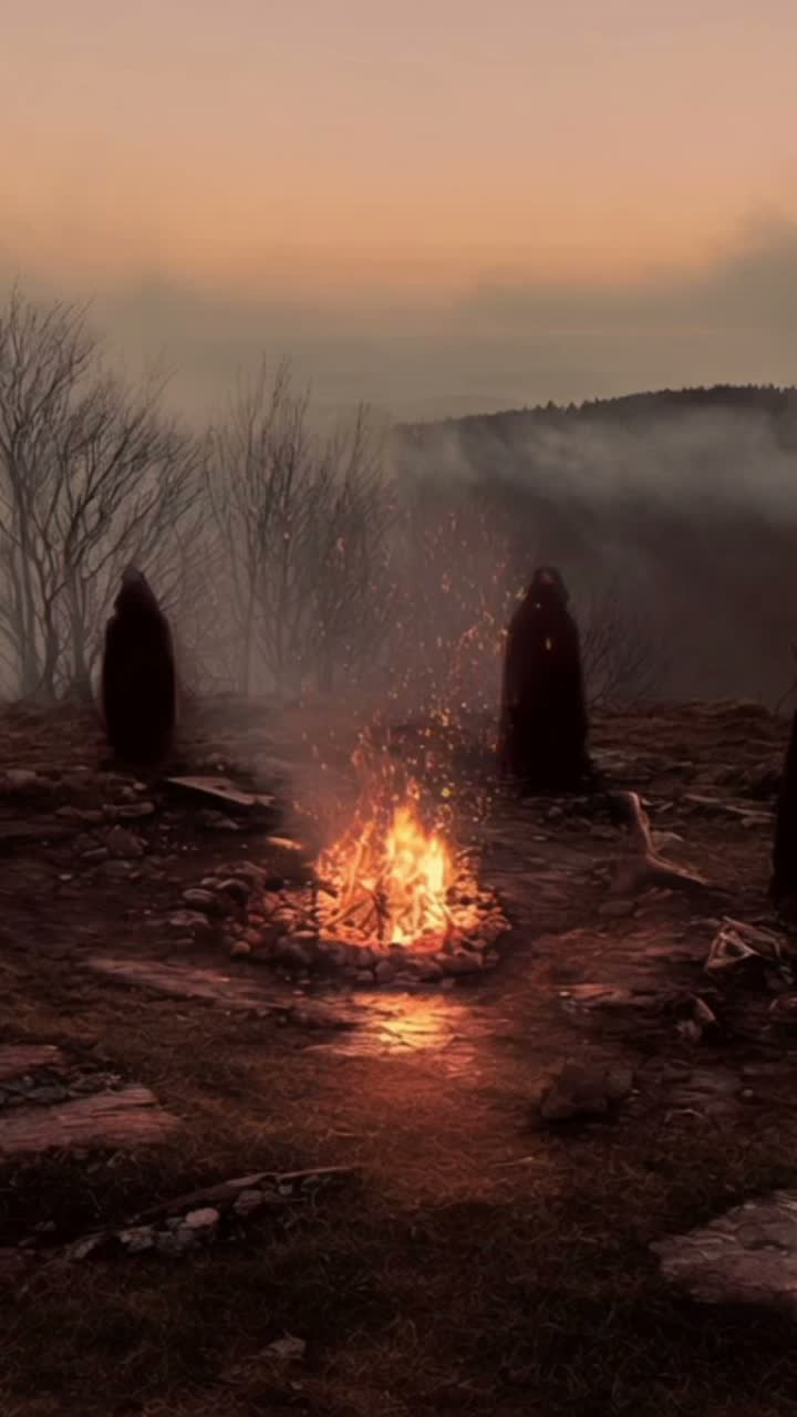folk, distant bells and ritual drum pulses, night cemetery atmosphere with demonic presences, minimal, slow, unobtrusive start and end, ambient, whispered slavic chants, ultra-slow, then slowly fading back to minimal drones, designed as a multi-minute seamless loop with soft, creaking trees, evolving from sparse cold pads to denser haunted textures, soft, heavy drones and thick sub-bass under misty choirs, dark slavic folk ambient