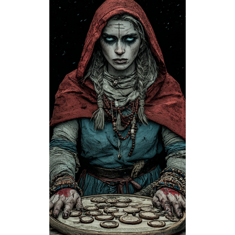 Slavic dark ambient + shamanic industrial at 120 BPM: heavy ritualistic percussion (war drums, frame drums, metallic clanks), distorted low-end one guitar riff, crushing sub drones, tribal chanting, aggressive female spoken word and harsh female throat-singing (no melodic singing), Gritty, primal, ominous, Long-form ~10 minutes, loopable climax
