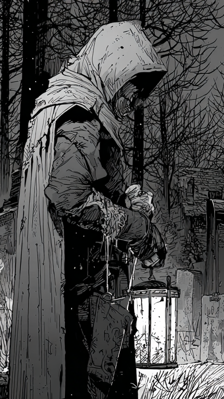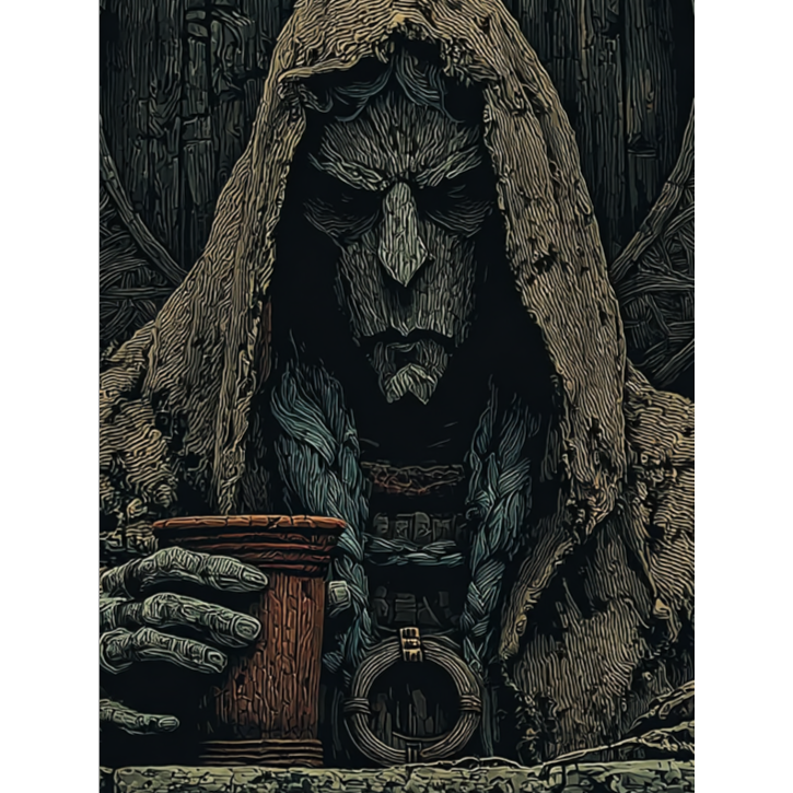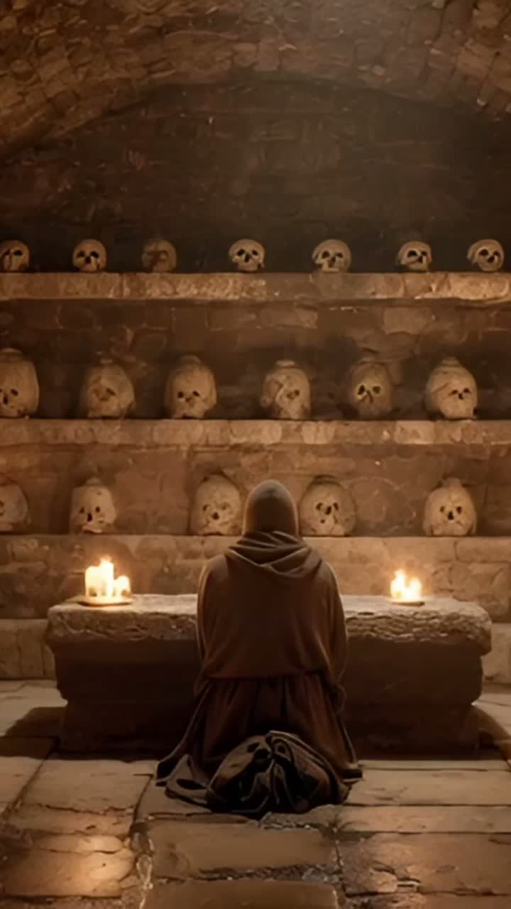 Deep Male Bass-Baritone, Ritualistic Monastic Drone, Ominous Throat Singing, Gravelly Low Whispers, Dark Ambient, Minimalist Downtempo, 80 BPM, Hypnotic Pulse, Medieval Horror, Thick Atmosphere, Sub-bass, Cathedral Reverb, No Melody