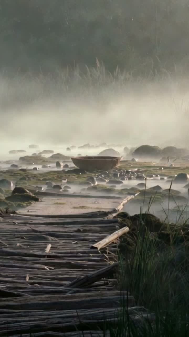 foggy pads, hypnotic, dark slavic ethno-ambient, slow, hypnotic trance, 170 bpm drum & bass breaks, breaks, ritual male and female vocals, deep sub-bass, ambient, deep, trance, low