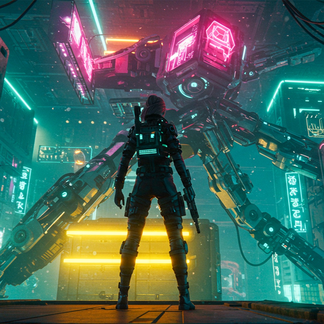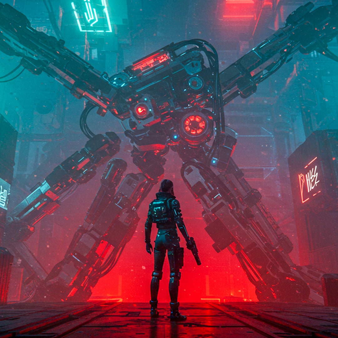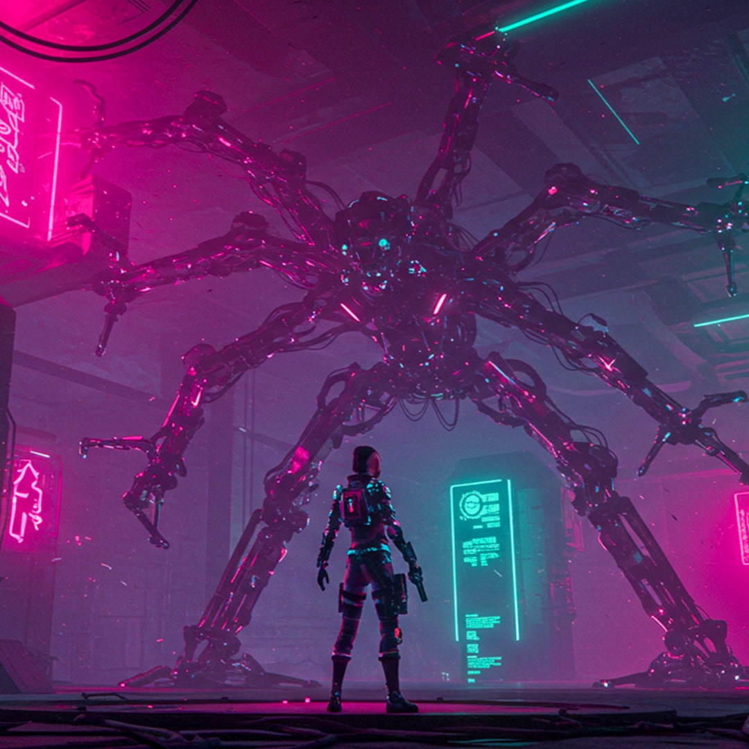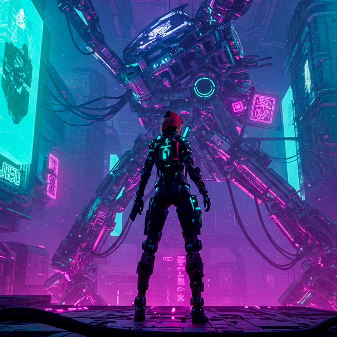 [Clear mix & mastering sound], Create an aggressive and futuristic acid techno track set in a cyberpunk dystopia, Use a heavy 4-on-the-floor beat at 138 BPM, driven by distorted 303 acid lines and glitchy, randomized vocal chops, Introduce granular textures and pitch-modulated stutter effects across the stereo field, Add rhythmic static pulses, metallic percussions, and chopped samples with synthetic resonance, Build tension with risers, sidechain compression, and sudden tape stop FX, Emphasize a dark, high-tech, neon-lit atmosphere with mechanical groove and brutalist sonic architecture