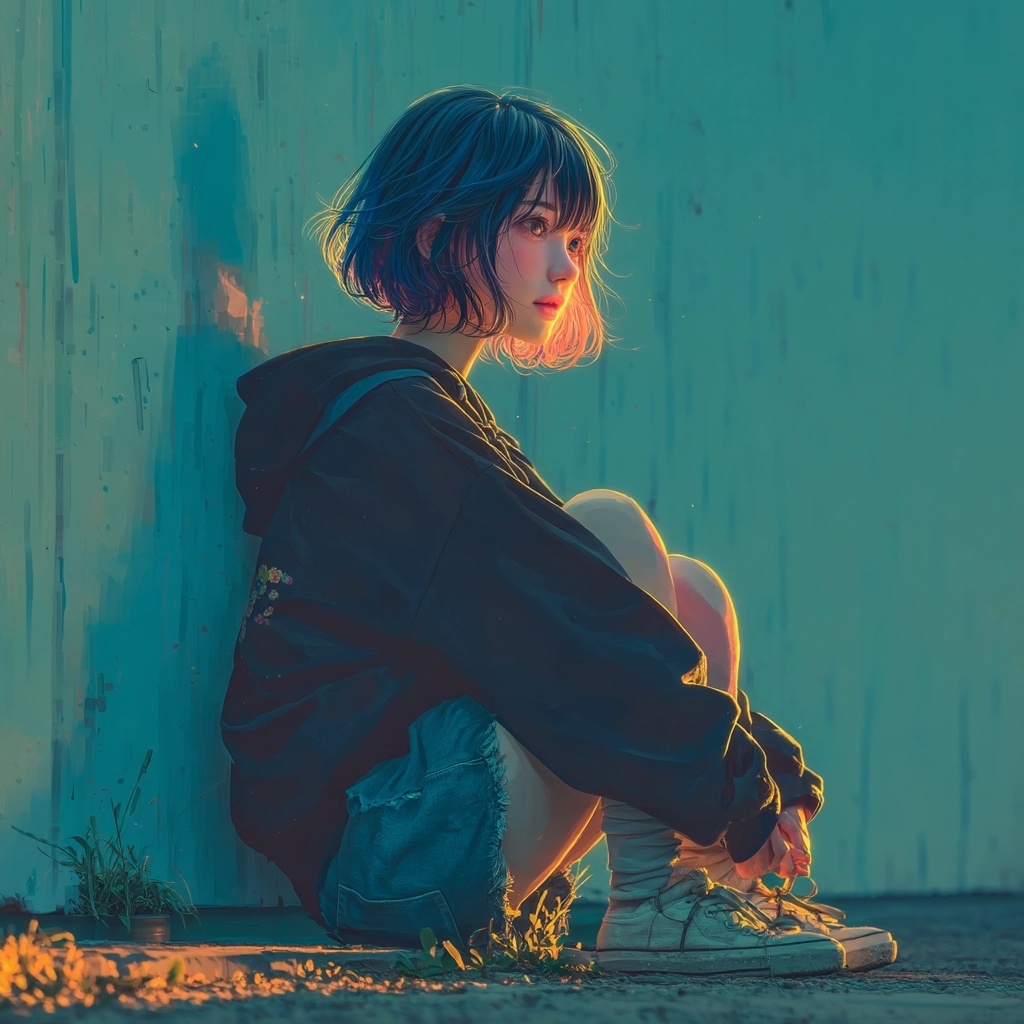 chill, lo-fi hiphop, future funk, girls hiphop duo, shoegaze atmospheric, Japanese city pop vibes, playful and emotional, click sound, tremolo, girl secretly in love with her friend
