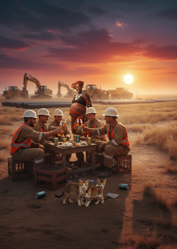 An Afro blues beat sets an infectious groove, layered with syncopated African percussion and a steady acoustic guitar rhythm, A smoky male vocal delivers soulful R&B melodies, Electric blues guitar adds expressive lead riffs, while warm electric keyboard chords back the arrangement, building dynamic energy, ‑Rap