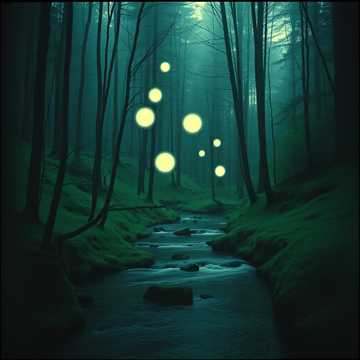 Add gentle nature sounds such as forest ambience, wind, flowing water, or distant wildlife, The overall mood should feel calming, mystical, slightly dark, and guided by a subtle rhythmic pulse, ]