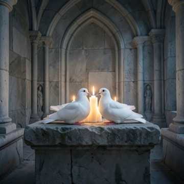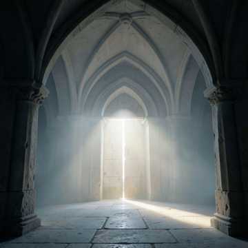 Simple and singable melody emphasising minimalist and ultra-melodic vocal beauty, Meditative choral ostinato in four-part SATB harmony, Slow, ethereal, and reverent sacred music, Soft acoustic guitar fingerpicking and a gentle pastoral flute counter-melody, Massive cathedral reverb, spacious mix, wave-like vocal swells, ancient and solemn atmosphere, legato delivery