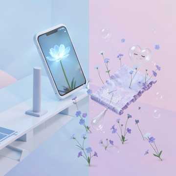 Kawaii future bass meets anime slice-of-life BGM; bright sidechain synths, bell arps, and bubbly chords, A-section is almost beatless with close-mic whisper samples and soft pads; B-section lifts with melodic leads, sparkly risers, and bouncy bass, Chorus flips into a light bossanova groove with jazzy chords, brushed-style percussion, and chill swing, then layers back future bass textures for a cozy, futuristic VTuber theme