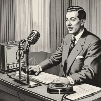 clear voice, vintage, lofi, retro radio, 1940s, commercial, advertisement, Midatlantic accent, vintage voice, male voice
