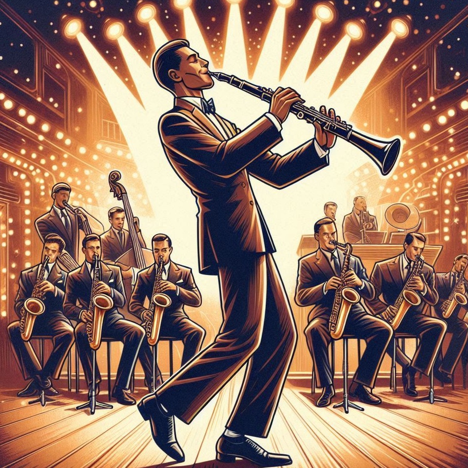 1930s, big band, with melodic clarinet and saxophone duet