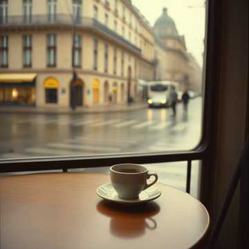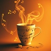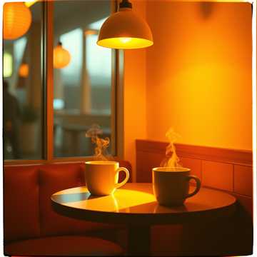 ambient, mellow beat, ambient coffee shop sounds, soft guitar plucks, slow and cozy, gentle piano, gentle, muffled conversations and cups clinking as samples, mellow, warm fall city evening, soft, chill lofi, warm, slow