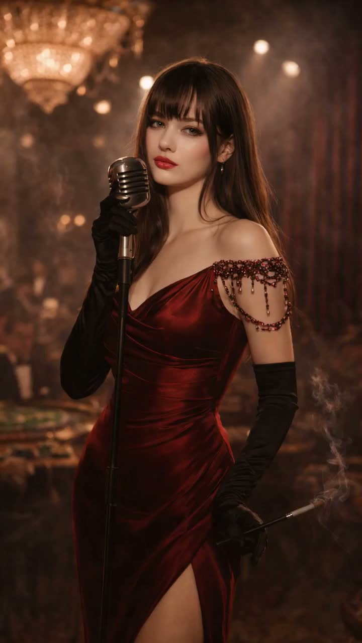 Vibe: Femme fatale performer, vintage burlesque elegance with modern sensuality