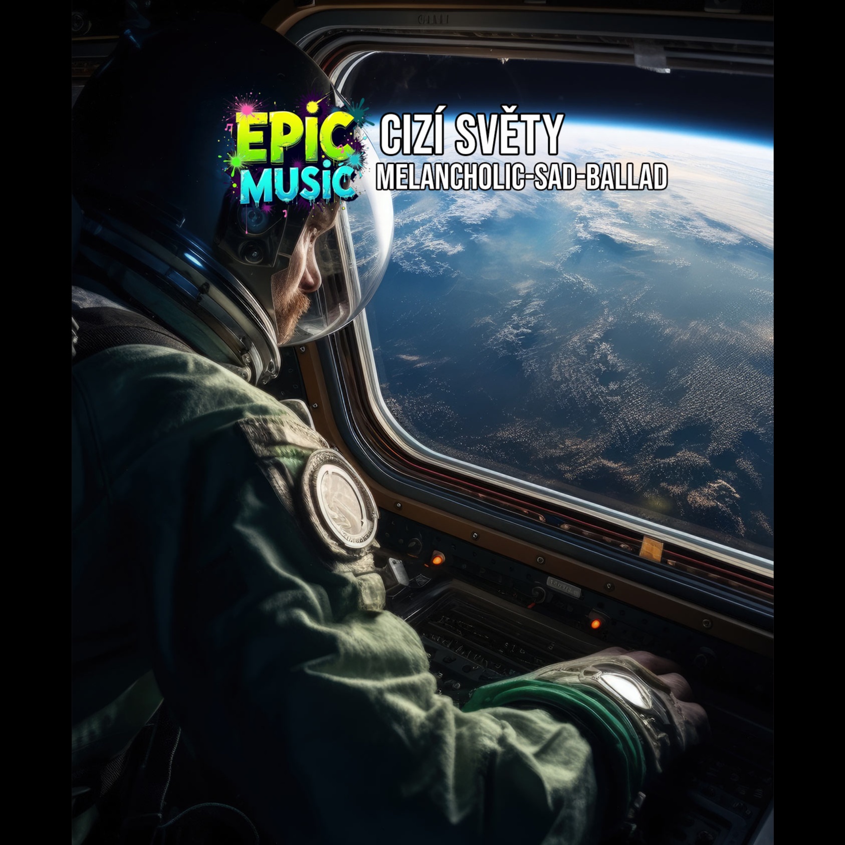 Epic Orchestra Cinematic, Cosmic Synthwave, Ambient space, neurofunk – sweeping orchestral melodies, dramatic percussion, mysterious undertones, cinematic space adventure, male vocals, male voice