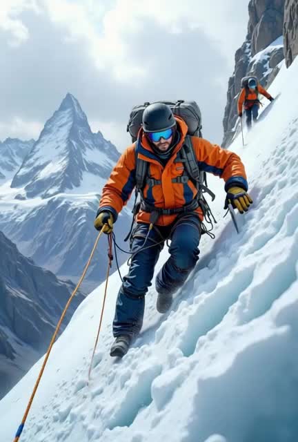 Cinematic Orchestral Epic, slow tempo, deep male vocals, ambient wind and avalanche fx, powerful strings and horns, emotional build