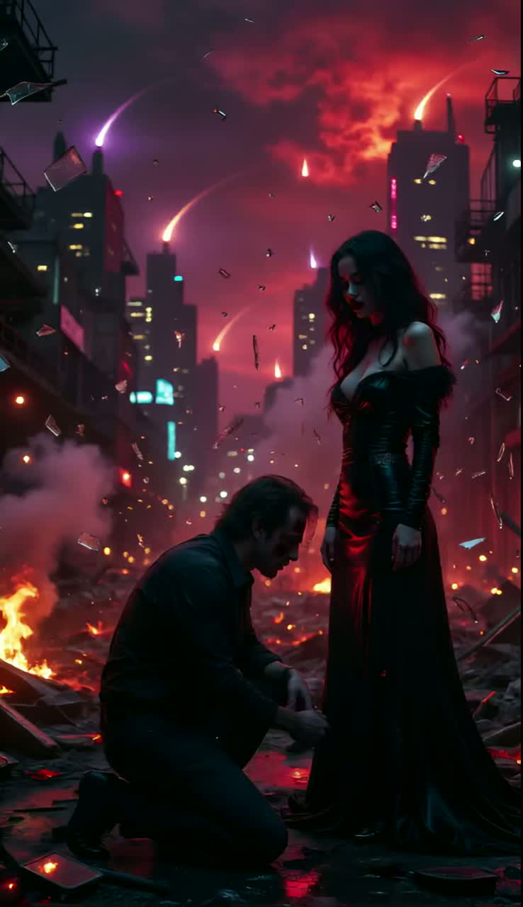 Genre: Cinematic Industrial Pop-Rock, Epic Synth-Goth, Mood: Apocalyptic, cataclysmic, and cinematic, like a villain’s anthem for a final battle, Vocal Style: A single male Vocal that is both a haunting, ethereal whisper and a powerful, soaring war cry, commanding and dominant, Instrumentation: The beat is a **cataclysmic, relentless assault of massive, echoing BOOMs** on every single beat, with thunderous, industrial percussion that shakes the ground, The sound is driven by a dark, pulsating synth melody and a seismic, bone-rattling bassline, with a single, distorted electric guitar adding a layer of chaos, Production: The production is overwhelming and crushing, building to a final, earth-shattering crescendo, Every element is pushed to its absolute limit, leaving no room for light or hope