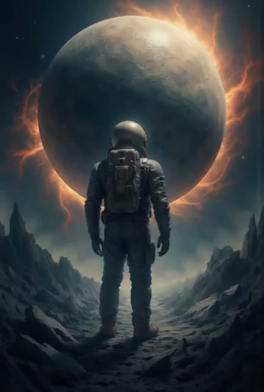 Epic Orchestra Cinematic, Cosmic Synthwave, Ambient space, neurofunk – sweeping orchestral melodies, dramatic percussion, mysterious undertones, cinematic space adventure, male vocals, male vioice