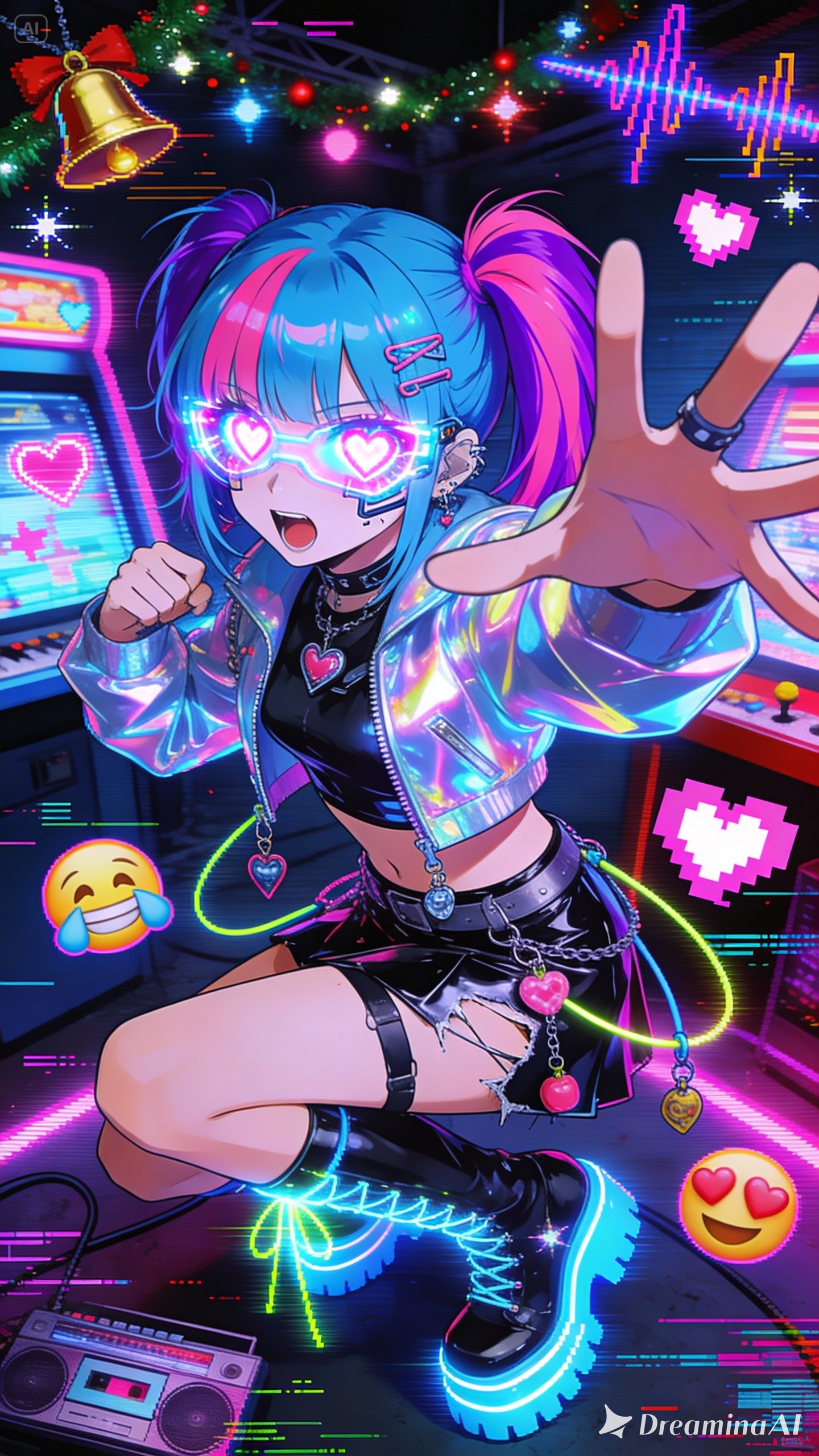 Style, Mood: Denpa song, Bimbocore, J-Pop, chaotic but cute, high-energy, playful madness, controlled insanity, Tempo: 155 - 165 BPM, Key: bright minor with hyperpop modulations, Description: A hyperactive denpa bimbocore track performed by Splin, girl, Sugar-rush energy mixed with glitch chaos and kawaii aggression, Fast chiptune leads, bouncy saw synths, distorted bimbocore guitar stabs, playful bass, and constant glitch fills, Verses are jittery and colorful, pre-chorus pulls back with filtered vocals and rising tension, chorus explodes into infectious denpa hooks with chant-like repetition, Vocals are cute but sharp, layered with pitch-shifted doubles, formant jumps, and digital stutters, Christmas bell accents appear subtly as sparkles, not dominant, Bridge uses radio static, spoken lines, and broken signal FX, Final chorus goes maximal, overloaded, euphoric, ending with an abrupt digital cutoff, Fun, addictive, slightly unhinged, but polished and intentional