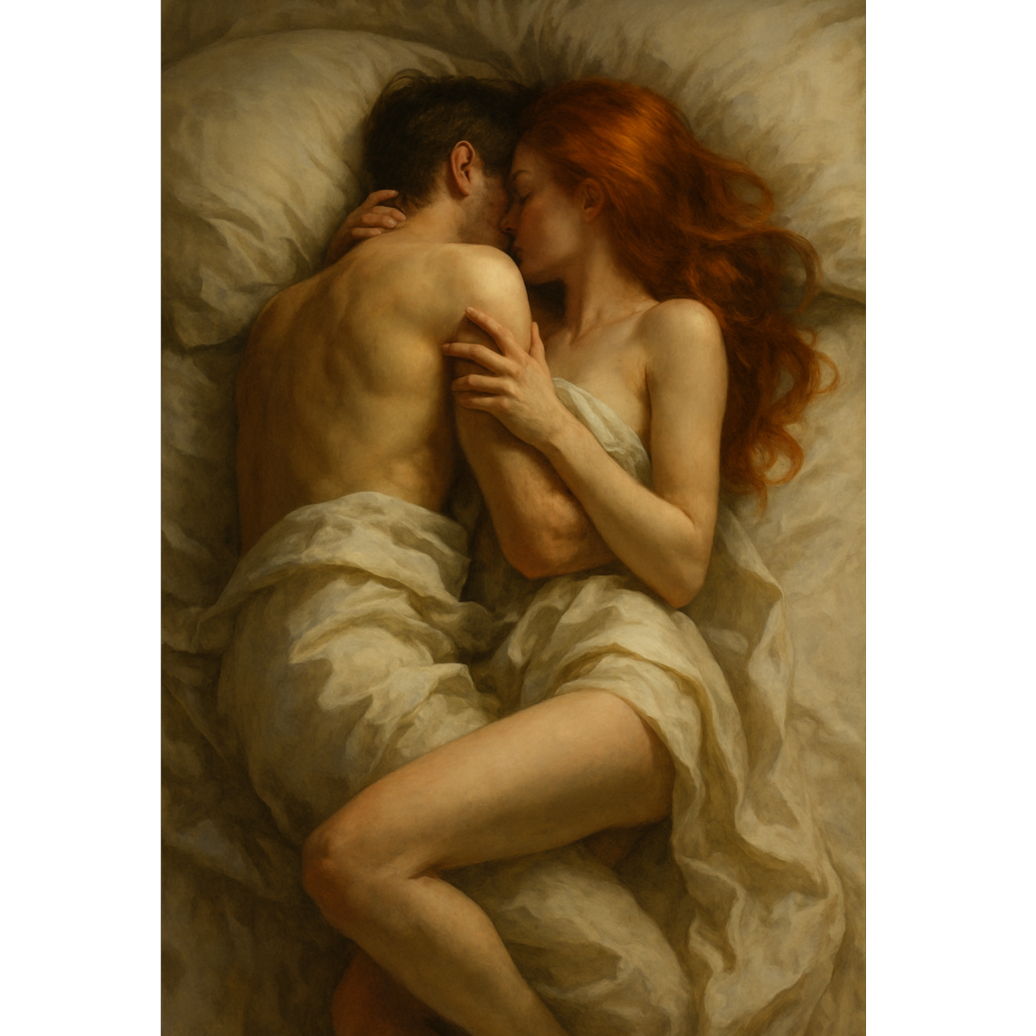 Voix féminine haletente, sexy et sexuelle, Dark R’n’B / sensuel / sexy/ cinématographique, progression lente qui monte vers une transe charnelle, avec un drop instrumental hypnotique avant le refrain final, Tempo : lent et sensuel (≈ 70 BPM), Ambiance générale : R’n’B moderne & dark pop cinématographique, proche de The Weekend, Beat RnB/trip-hop minimaliste au début (kick profond, hi-hats discrets), Montée progressive vers un beat plus marqué et enveloppant dans le pont, Dans le drop, la rythmique devient plus appuyée, presque hypnotique, Voix féminine chuchotée et caressante au début, très proche du micro, Progression : voix plus vibrante, plus haletante, jusqu’à l’apothéose du pont, Effets : reverb chaude, échos légers sur certains mots-clés (“soupirs”, “désir”), Contrechants vocaux murmurés dans les refrains passionnés