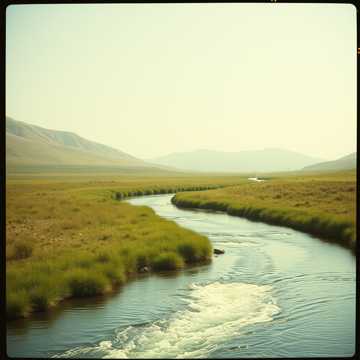 [Grand Piano (soft arpeggio, warm EQ, HPF @80Hz), Fingerstyle Acoustic Guitar (stereo panned), Soft Brush Drums (kick/snare/hi-hat), Low-register Harmonica (gentle vibrato), Ambient river breeze SFX]