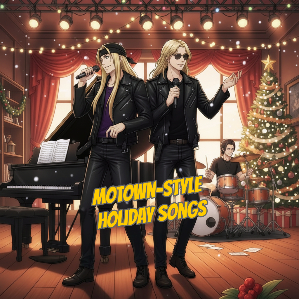 80s pop rock with a strong 60s Motown influence, festive, powerful brass section Motown, soul, groove, vocal style : shout + growl, AOR, jazz chode, Clubby, Big Band, piano chode