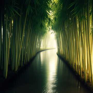 At 60 bpm, the piece unfolds in natural layers: initial silence opening into deep, earthy drones and a tactile frame drum pulse, followed by flowing warm strings and gentle bamboo flute, Shimmering wind chimes and light whistles enliven the midsection, with subtle high pure tones evoking animal resonance, All textures daybreak into one radiant, unified ambient symphony, evoking peaceful harmony in a forest clearing