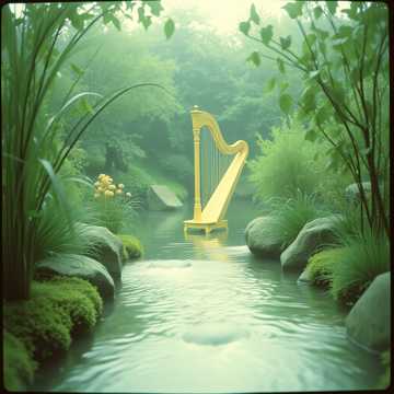 At 60 bpm, start with distant flowing water and serene garden ambience, Soft piano gently introduces a motif, with harp arpeggios weaving in, Bamboo flute phrases drift above gentle string pads, as angelic “ahh” and “ooh” choir textures evolve, Layers continuously morph, never peaking, natural fade-in/out ensures seamless, endless looping